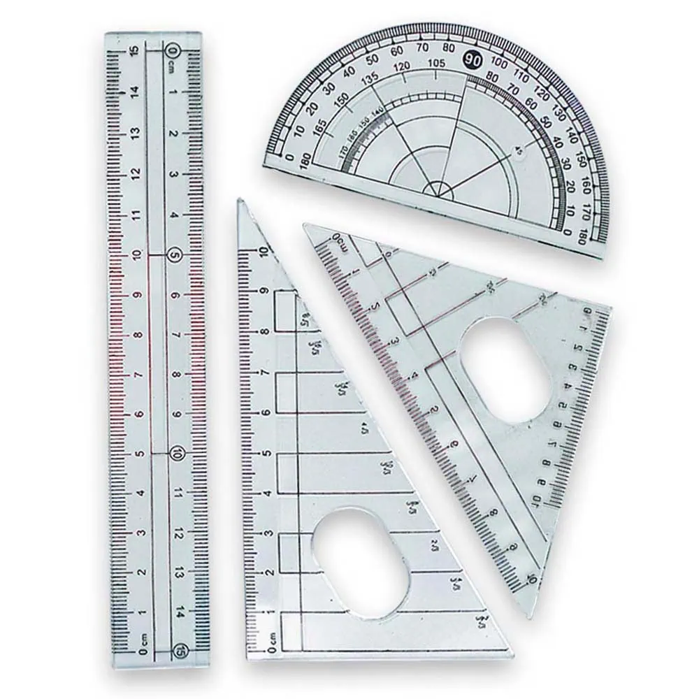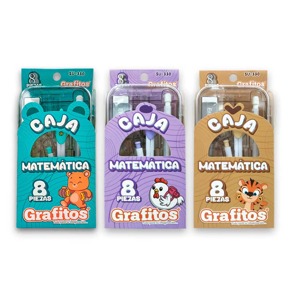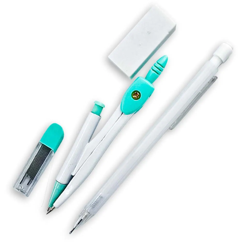Dentro de esta adorable cajita, encontrarás dos escuadras, una regla y un transportador que combinan precisión con un toque de ternura. También incluye un compás metálico y un borrador ultra duradero, perfectos para asegurarte de que cada trazo y corrección sea impecable.