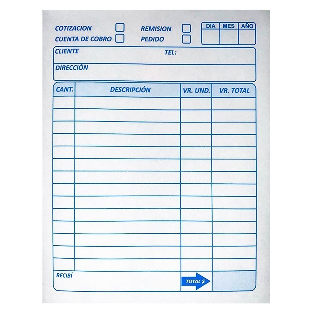 Cada factura en el facturero tiene un tamaño mediano, siguiendo la medida estándar de 1/32. Esto ofrece un espacio suficiente para registrar toda la información relevante de la transacción, como los datos del cliente, los productos o servicios adquiridos, los precios, los impuestos y otros detalles importantes. Además, cada factura viene con una copia química, lo que te permite mantener un registro preciso y organizado de tus operaciones.