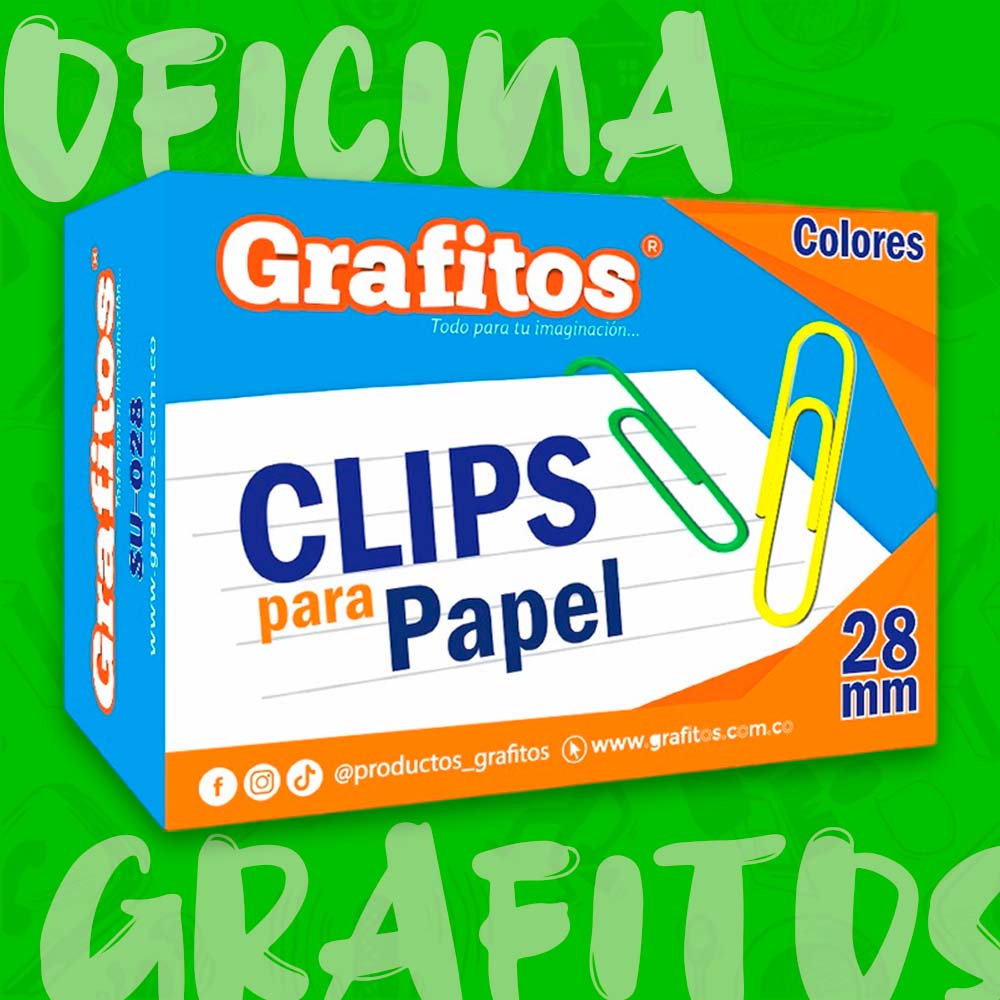 Caja de clips de colores para oficina o estudio contiene 100 unds de 28 mm de tamaño