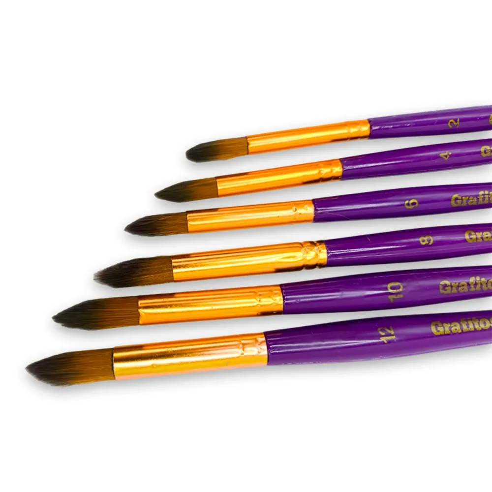 Los Pinceles Redondos x6 Piezas son la elección perfecta para artistas que buscan calidad y comodidad. Con un mango de madera ligero y resistente, ofrecen un excelente control y durabilidad para largas sesiones creativas.