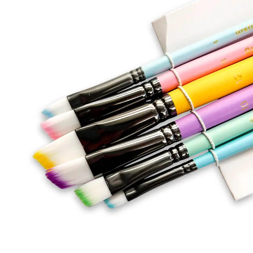 El Set Pinceles Angulares Grafitos x6 es la herramienta perfecta para artistas que buscan precisión y versatilidad en sus técnicas. Este set incluye 6 pinceles angulares de diferentes tamaños, diseñados específicamente para facilitar trazos definidos, curvas suaves y acabados detallados en pintura acrílica, óleo, acuarela y técnicas mixtas.