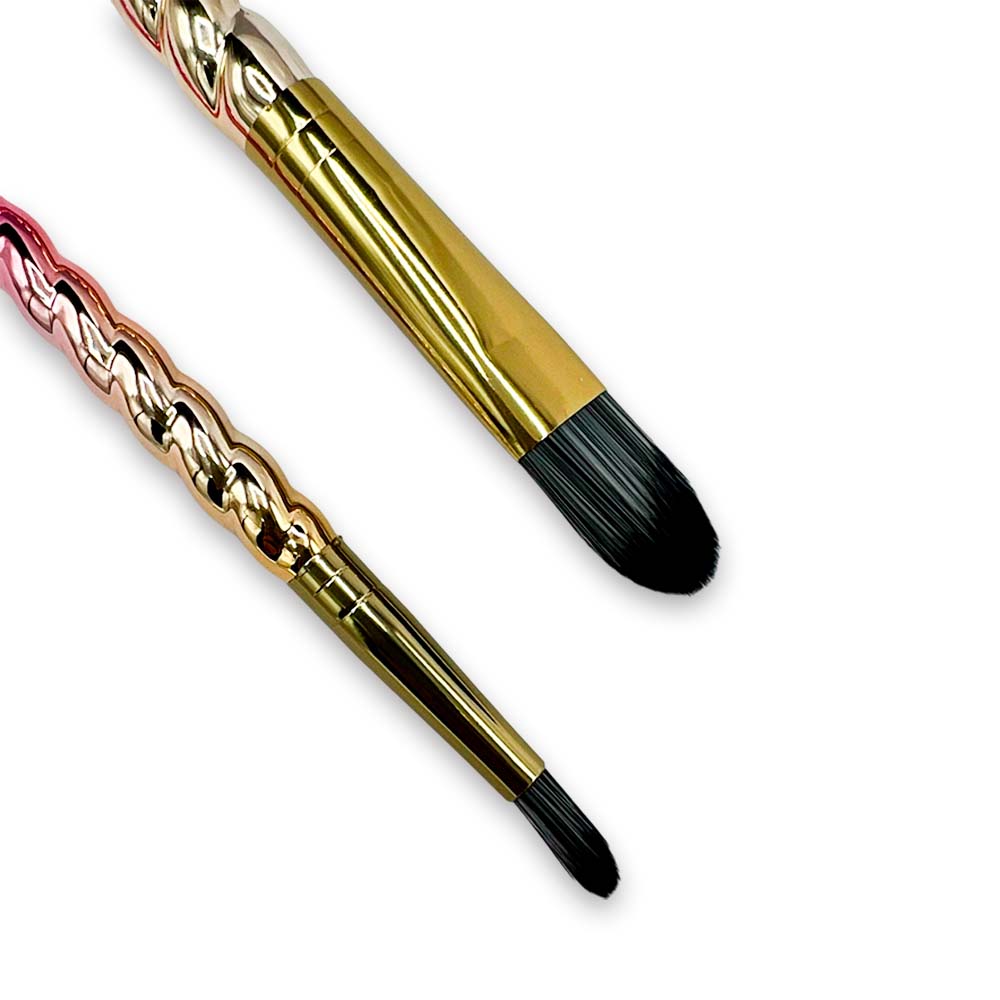 Cada pincel cuenta con un mango espiralado con efecto cristalino, decorado con pequeñas esferas internas que le dan un toque estético único ✨. Estos mangos no solo lucen increíbles, sino que también están diseñados ergonómicamente para brindar comodidad y precisión durante su uso. Las cerdas son suaves pero firmes, sintéticas y fáciles de limpiar, lo que garantiza un rendimiento duradero y profesional 💫.