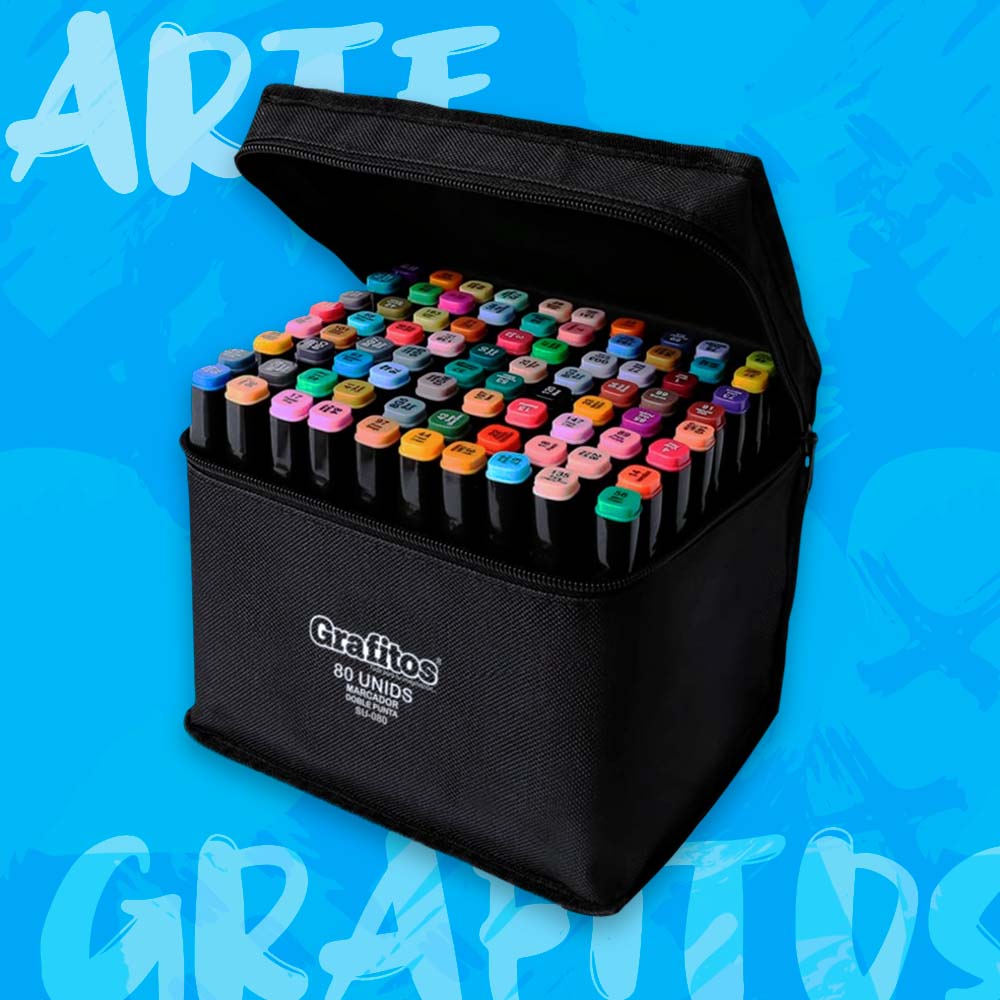 Maletín de tela x80 marcadores doble punta a base de alcohol marca grafitos.
