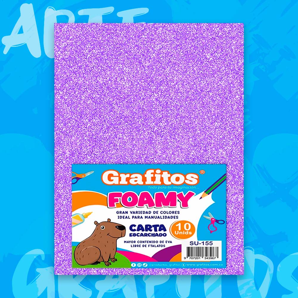 Fomi de color Lila Escarchado, ideal para uso escolar o de manualidades.