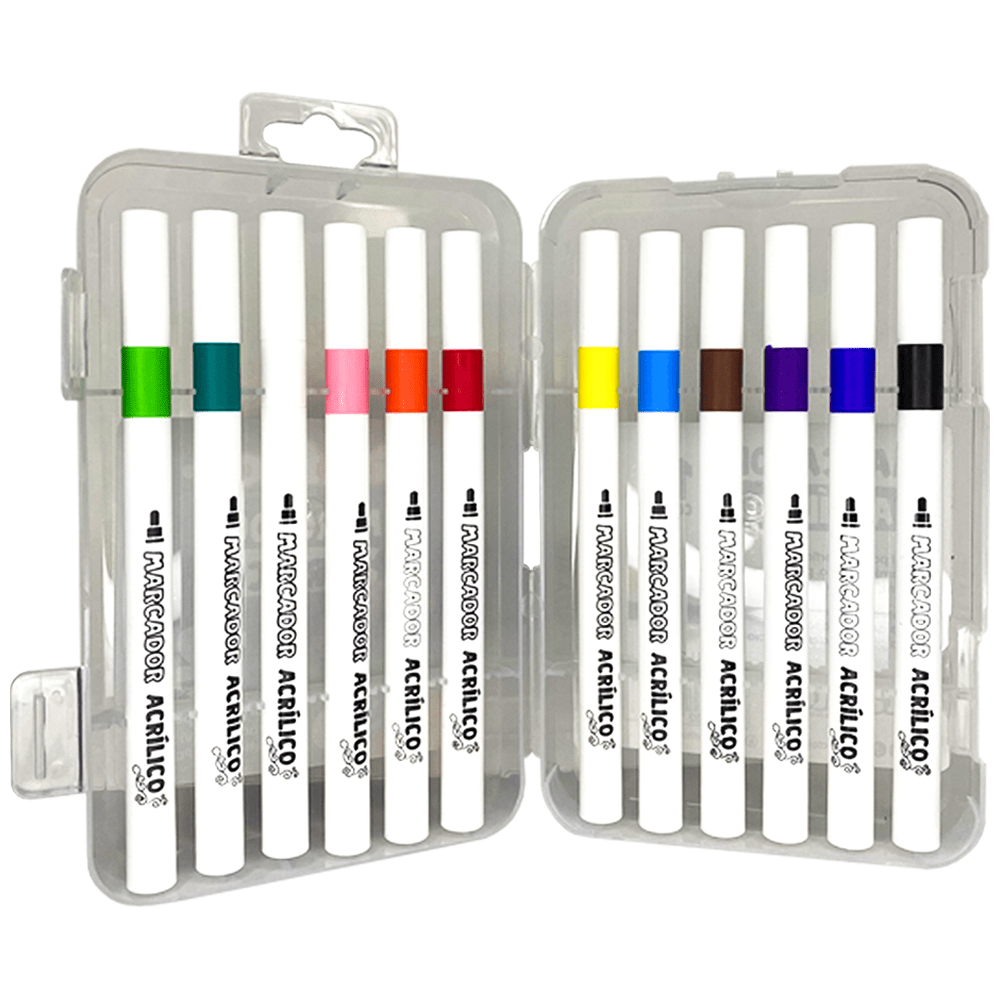 El estuche de marcadores acrílicos de 12 unidades es una opción imprescindible para artistas y creativos. Estos marcadores son ideales para una amplia variedad de superficies, como cerámica, vidrio, plástico y papel, lo que los convierte en una herramienta versátil para tus proyectos artísticos. Los marcadores acrílicos destacan por sus colores intensos y vibrantes, que incluyen verde, verde biche, amarillo, rosado, naranja, rojo, blanco, celeste, marrón, morado, azul oscuro y negro. Estos tonos permiten una expresión artística impactante y detallada, brindándote la posibilidad de crear obras visualmente sorprendentes.