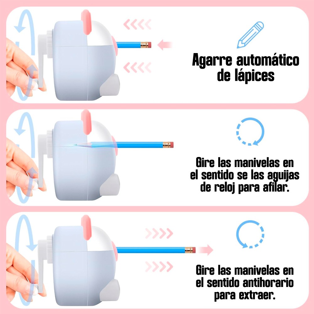 ¡No te quedes sin el tuyo! Con su diseño kawaii y su funcionalidad excepcional, este sacapuntas se convertirá en tu accesorio favorito. Compra ahora y disfruta de un sacapuntas práctico y encantador que hará más alegre tu rutina diaria.