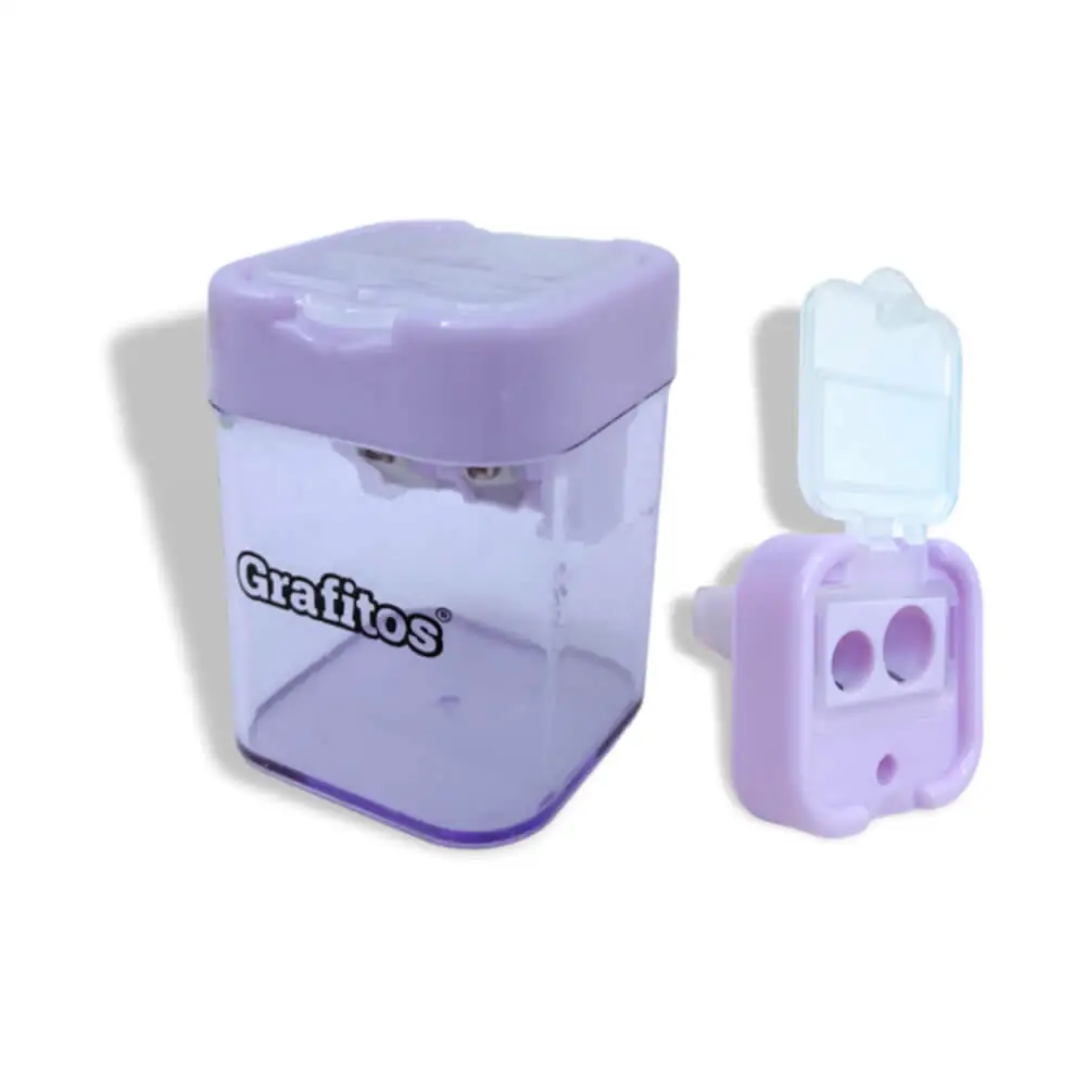 El Sacapuntas Cuadrado Grafitos Translúcido destaca por su diseño compacto y moderno, ideal para quienes buscan practicidad y estilo en sus útiles escolares o de oficina. Su forma cuadrada permite un agarre cómodo y estable, facilitando el afilado de lápices estándar y gruesos con precisión.