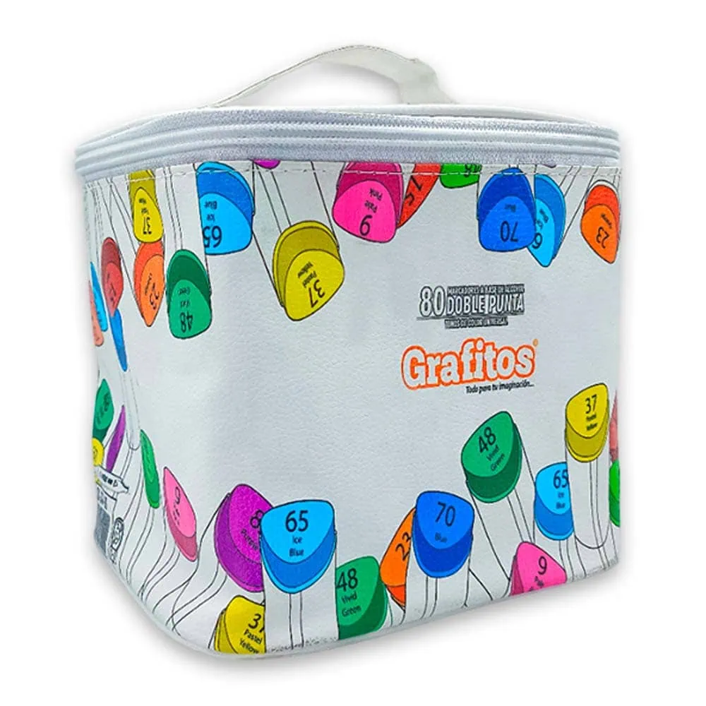 El estuche de cuerina de primera calidad combina estilo y funcionalidad. Con un cierre seguro y una manija práctica, es fácil de transportar, permitiéndote llevar tu colección completa a cualquier lugar. ¡Lleva tu creatividad al siguiente nivel con el Set de 80 Marcadores!