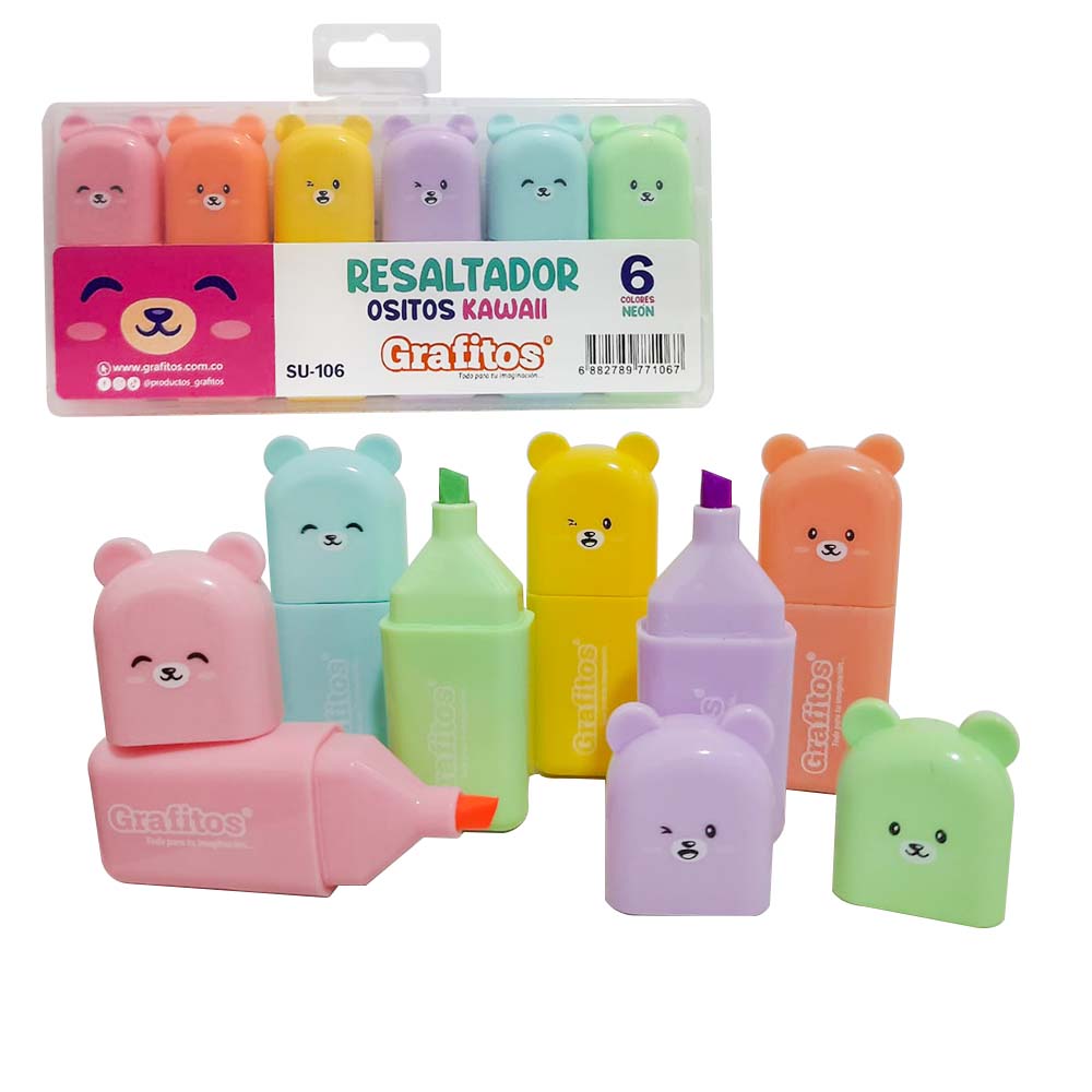 Set de Resaltadores Mini Ositos x6 Grafitos
