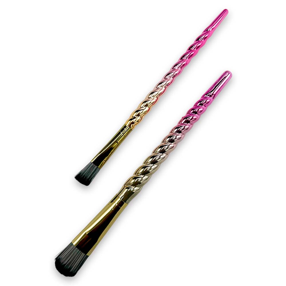 Cada pincel cuenta con un mango espiralado con efecto cristalino, decorado con pequeñas esferas internas que le dan un toque estético único ✨. Estos mangos no solo lucen increíbles, sino que también están diseñados ergonómicamente para brindar comodidad y precisión durante su uso. Las cerdas son suaves pero firmes, sintéticas y fáciles de limpiar, lo que garantiza un rendimiento duradero y profesional 💫.